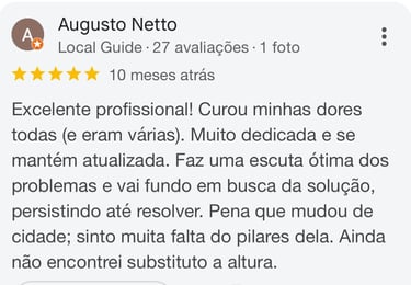 Atendo pacientes com dor na coluna em diferentes fases — desde quem está iniciando sintomas ou convive com dor persistente. Cada plano é estruturado de forma individual.